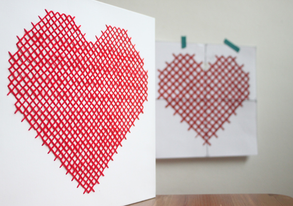 Lorsque nous mettons des X à la fin de nos petits mots d’amour pour signifier ʺbisesʺ, il n’y a plus qu’un pas pour que cela nous fasse penser au point de croix. Avec la Saint Valentin qui se profile, on s’est dit que nos croix et nos points, on allait les afficher en gros. Et si au lieu de travailler dans un tambour à broder, on changeait de support ? On a d’abord pensé à customiser un Airbus avec un motif point de croix mais après de savants calculs on s’est dit que c’était irréalisable. Comme la lucidité nous a rattrapées (de justesse) on vous propose donc de réaliser un cœur au point de croix sur châssis entoilé en 30 x 30 cm pour votre amoureux, pour vous deux ou pour vous-même car on a le droit de n’aimer que soi. Alors forcément, en voyant la dimension, on peut avoir peur mais qu’on se rassure, les croix font 1 x 1 cm ou 2 x 2 cm. Ouf !